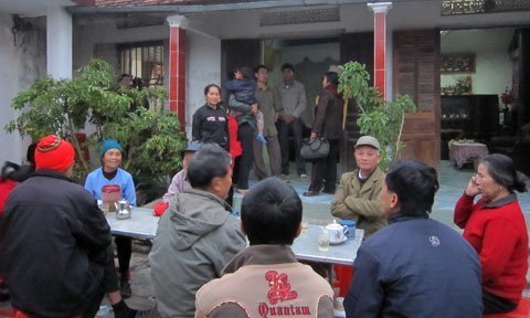 | Rất đông người dân kéo đến nhà người thoát nạn duy nhất trên tàu Queen chia vui cùng gia đình. |