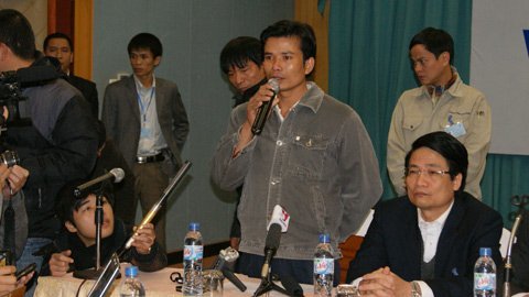 | Thuỷ thủ Đậu Ngọc Hùng tại buổi họp báo tối 4/1. |