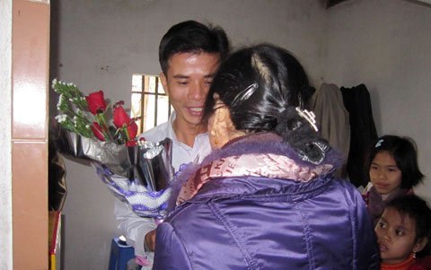 | Người thân đón thuỷ thuỷ Hùng bằng những tình cảm thương yêu nhất. |