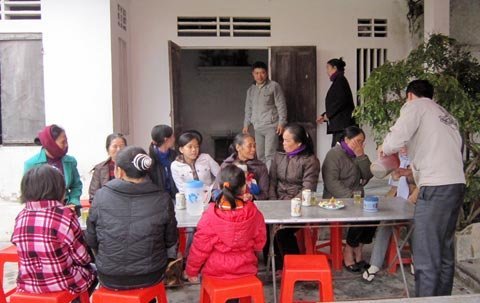 | Người dân đến chia sẻ niềm vui cùng gia đình. |