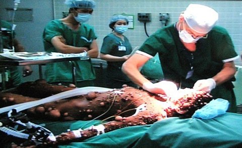 Bệnh nhân Sa Ly là một trường hợp đặc biệt. Chuyên gia người Mỹ nhận định trong hàng chục năm làm phẫu thuật, ông chưa từng gặp trường hợp nào có nhiều khối u như thế này.