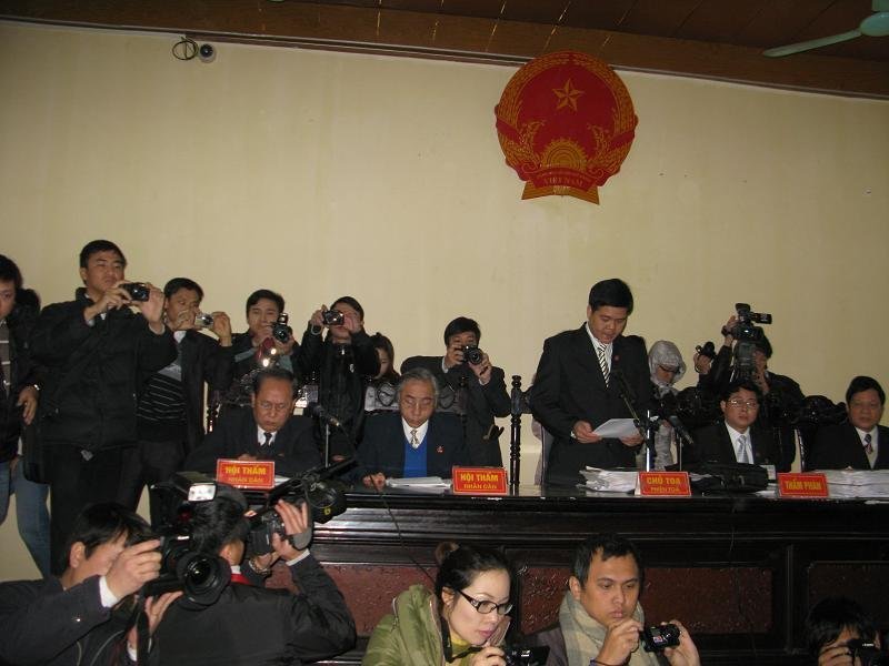 14h: Bên trong phiên toà, trước khi đi vào phần xét hỏi, đại diện VKS đã đọc toàn văn cáo trạng.