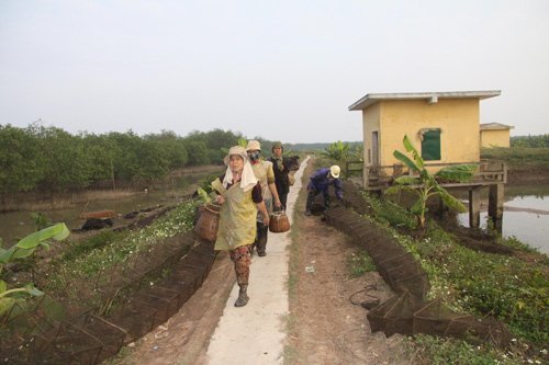 Trên những con đường kẻ ô bàn cờ chia các khu vực đầm nuôi trồng thủy hải sản thành từng ô khoảnh, những hàng chuối đều tăm tắp bời bời mọc lên. Trên mặt nước là cảnh tượng những đàn vịt đẻ hàng trăm con đang thản nhiên bơi lội.