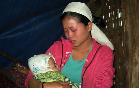 Ôm đứa con nhỏ, nước mắt người vợ trẻ lăn dài trên gò má...