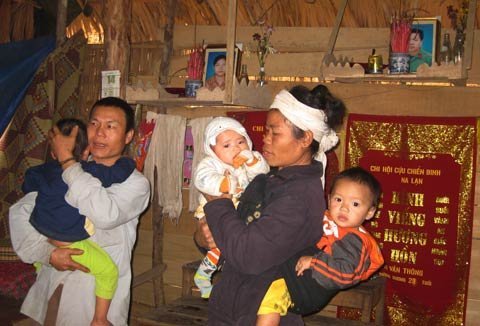 Chúng tôi đến nhà ông Lô Văn Hùng, ông bà vừa mất đi 2 con trai là Lô Văn Thông (SN 1988) và Lô Văn Minh (SN 1990). Cả hai ông bà đang bồng bế một lúc 3 đứa cháu, đứng bất thần trước di ảnh 2 đứa con trai tội tình.