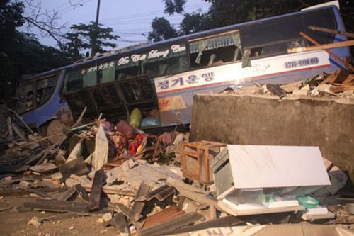 Rạng sáng ngày 17/1/2012, xe khách mang BKS soát 47B-001.00 chạy tuyến Đắk Lắk-Hà Nội do Trần Quang Đạt (SN 1976, trú tại Hương Sơn, Hà Tĩnh) điều khiển chở 30 hành khách trên xe bất ngờ mất lái đã đâm sập một ngôi nhà trên QL9 đoạn đi qua phố 6 phường, TP.Đông Hà.