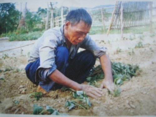 | Hàng ngày, ông En đi làm thuê kiếm sống. |