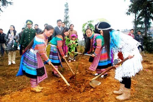 Háo hức trồng cây trong lễ hội