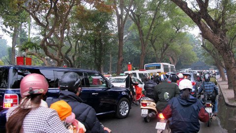 Một số tuyến đường ngày thường rất thông thoáng như đường Nguyễn Khánh Toàn, Trần Quốc Hoàn… thì nay mới 7h15 – 7h30 đã khá đông đúc, lộn xộn.