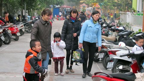 Anh Trần Mạnh Hà (Nghĩa Tân – HN) đưa con đi học tại trường THCS Dịch Vọng cho biết, việc đưa đón con đi học không quá rắc rối vì anh làm tư nhân, nhà lại gần trường. Tuy nhiên, về giao thông đi lại, anh Hà nhận định: “Cháu nhà mình bình thường 7h15 vào lớp, khoảng 7h mình đưa con đi học. Tầm này mọi hôm đường vẫn vắng, nhưng hôm nay có vẻ đông. Đi qua hai trường cấp 1 và cấp 2 Nghĩa Tân đã thấy cảnh ùn tắc”.