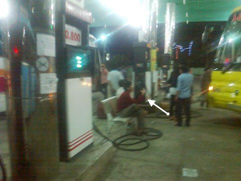 Một vài hành khách thức giấc xuống xe thấy bác tài hút thuốc cũng bắt chước châm thuốc hút ngay tại khu vực đổ xăng, dầu cách trụ bơm chỉ một vài mét.