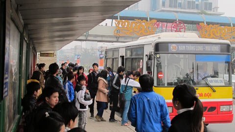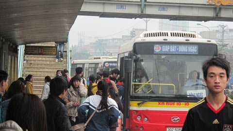 ![]() Bến xe buýt Cầu Giấy (trước cổng trường Đại học GTVT vào giờ cao điểm hôm nay cũng không lôn xộn như mọi hôm. |