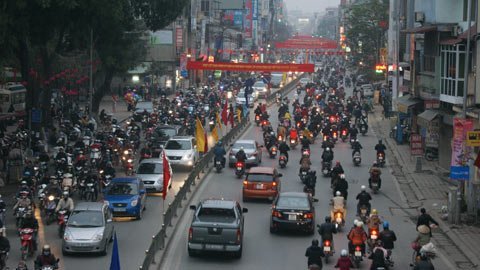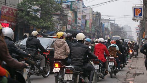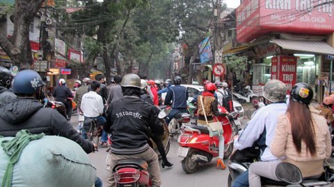 | Tình trạng ùn tắc cục bộ trên Đê La Thành chỉ xảy ra gần các ngã tư Nguyễn Chí Thanh, Láng Hạ. |
