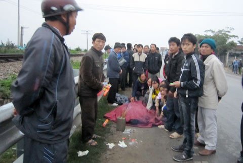 | Người nhà nạn nhân khóc bên thi thể bị tàu cán. |