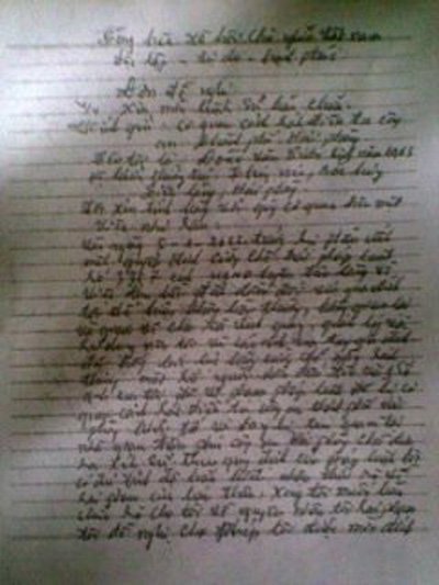 | Đơn yêu cầu luật sư của ông Đoàn Văn Vươn. |