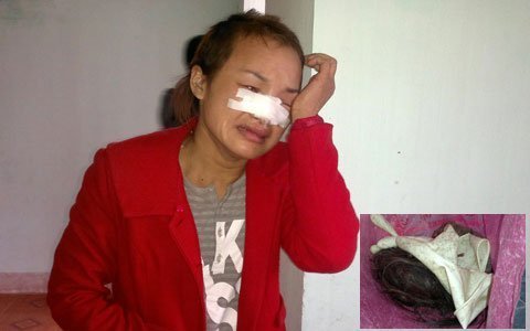 | Chị Nguyễn Thị Dung vẫn chưa hết kinh hãi sau khi chịu trận đòn ghen cắt tóc, dí roi điện và lột quần áo chà quả ngứa. |