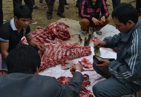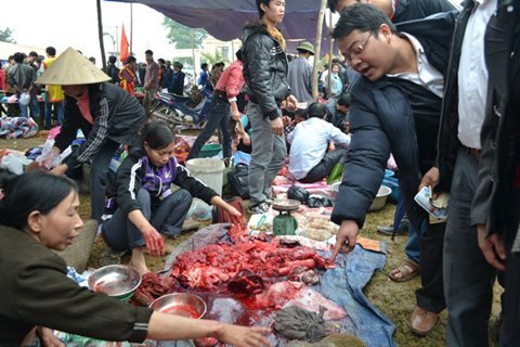 Thịt trâu trở thành món “đặc sản” của lễ hội để du khách thập phương mua về làm quà. Nhưng xem cảnh xẻ thịt ông Cầu để bày bán “kiếm lời”, những nét đẹp truyền thống của lễ hội chọi trâu lâu đời nhất này sẽ không còn ấn tượng đẹp trong lòng du khách thập phương.