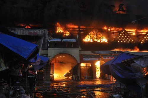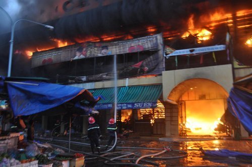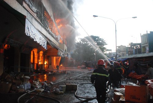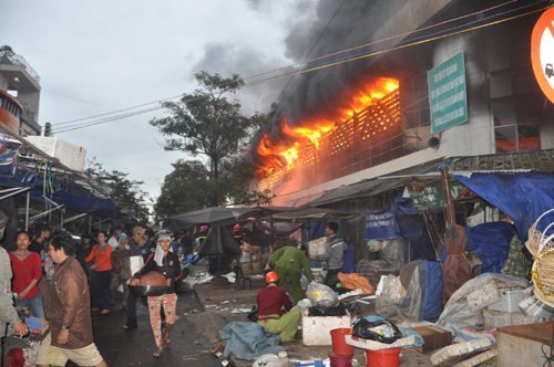 Lúc này tất cả cửa chợ bị đóng nên nhiều người dân không thể vào chữa cháy. Lửa cùng lúc càng lan nhanh tất cả các quầy trong chợ.