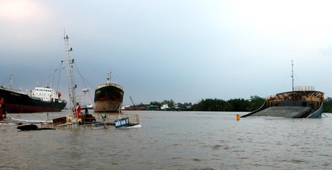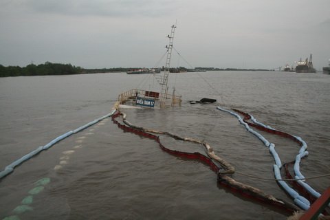 Có mặt tại hiện trường, P.V VietNamNet ghi nhận chỉ một phần đuôi con tàu và đài quan sát của tàu Biển Nam 17 có nhô trên mặt nước. Tất cả đã nằm sâu dưới lòng sông. Chung quanh tàu bị nạn, 120m phao vây và 700m phao thấm của DNTN Đại Minh đã bao vây vị trí tàu chìm ngăn chặn dầu tràn. Vị trí tàu chìm gần bờ nên không gây trở ngại giao thông đường thủy trên đoạn sông này.