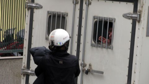 | Người dì cố đuổi theo xe giam cháu để đưa gói kẹo. |