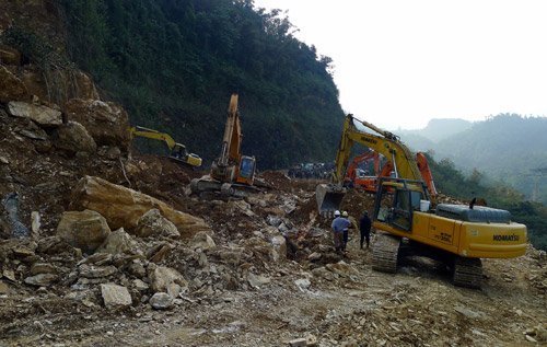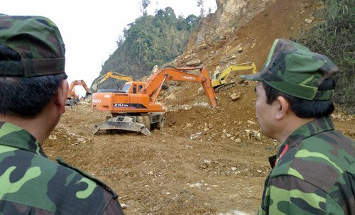 Riêng lực lượng quân sự gồm 30 người ở Bộ chỉ huy quân sự tỉnh, 30 người ở Ban chỉ huy quân sự huyện, lực lượng công binh 30 người, dân quân xã 180 người cùng với 6 máy xúc, 2 máy gạt, 2 máy nổ ép khí, 2 máy khoan đá, 1 máy chiếu sáng đã làm việc 24/24 giờ”.