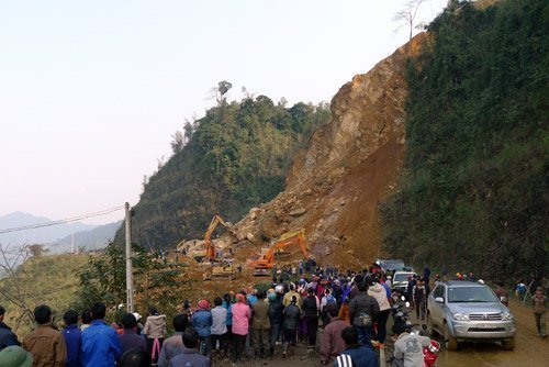 Tuy nhiên, từ khi vụ sạt lở xảy ra, do lượng đất đá quá nhiều, cộng thêm mưa dày hạt, trời tối mù mịt và đất đá vẫn tiếp tục sạt xuống nên công tác cứu hộ gặp rất nhiều khó khăn.