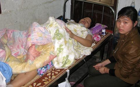 | Chị Lê Thị Sáng bị gãy xương đốt sống đang chuẩn bị được đưa ra Hà Nội phẫu thuật. Ảnh: Q.Huy. |