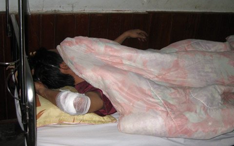 Chị Lê Thị Sáng, bị gãy xương cột sống nhớ lại: “Khoảng 12h ngày 23/2, khi làm thủ tục xuất cảnh xong tại cửa khẩu, chiếc xe khách mới đi khoảng hơn 100m thì nổ lốp phía trước lần đầu tiên. Nhà xe cho hành khách xuống để thay lốp rồi tiếp tục hành trình.