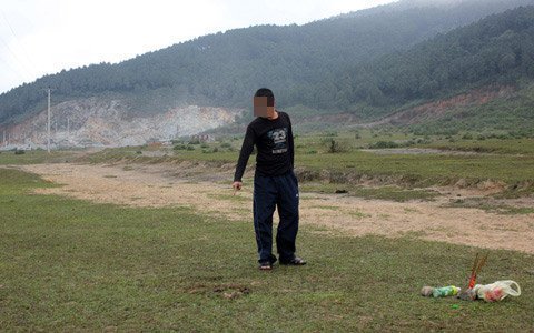 | Hiện trường nghi án bà Thìn bị xe đâm chết rồi vứt xác trên đồi, khu vực đường đi vào mỏ đá Hồng Mình (thuộc hợp tác xã Hồng Minh). |
