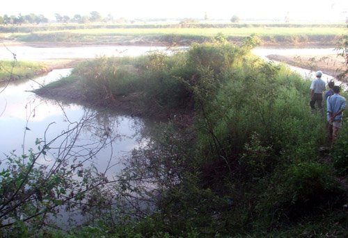 | Hiện trường bên bờ sông Ba, nơi xảy ra vụ chết đuối |