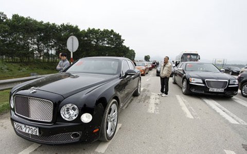 Tham gia rước dâu là đoàn siêu xe khủng với sự tham gia của đầy đủ các chủng loại, siêu xe Ferrari, Rolls Royce Phantom, Benley, Audi A5 Sportback, Lexus, Mercedes GLK, Mercedes C250 CGI, Porsche Cayenne, BMW...