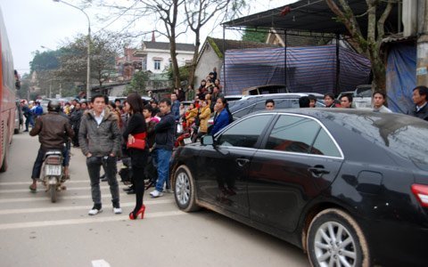 trăm nghìn đô tấp nập đổ về thị trấn để tham gia rước dâu thiếu gia Nguyễn Huy