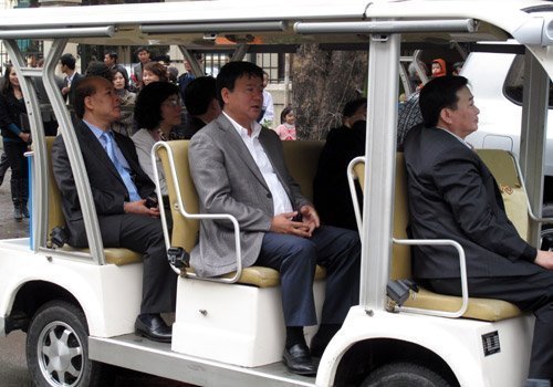 Bộ trưởng Đinh La Thăng đi khảo sát các tuyến phố trung tâm quận Hoàn Kiếm.