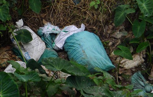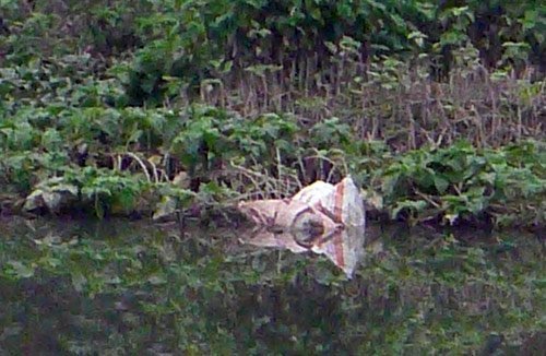 | Theo ông Túc, đây là những bao tải chứa vịt chết mà gia đình đã thả xuống sông Nhuệ |