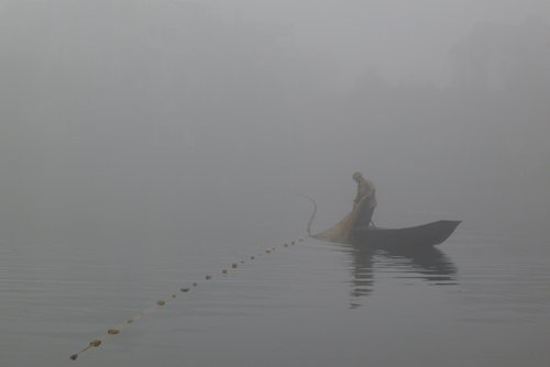 Hồ Văn Quán mờ hơi sương. (Ảnh: Phạm Hải)