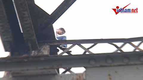 | Một nữ sinh dọa nhảy cầu Long Biên mới đây được phóng vien VietNamNet ghi lại hình ảnh - (Ảnh VietNamNet). |