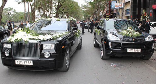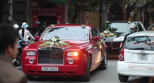 | Chiếc Rolls-Royce biển tứ quý nổi tiếng 99K-9999 cũng xuất hiện trong đám cưới này.