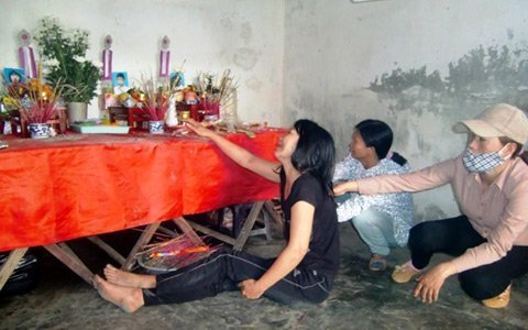 | Người mệ tội nghiệp quá đau đớn đã ngã khụy, gào khóc trước bàn thờ của 3 con. |