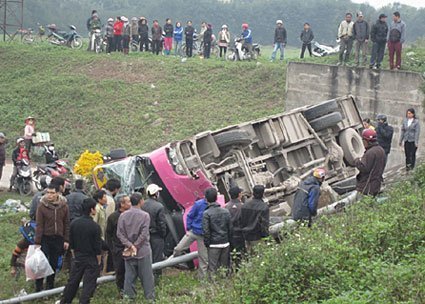 Xe khách chở gần 40 người mang BKS 17K - 8377 đang chạy hướng Thái Bình - Hà Nội khi đến khu vực gần chân cầu Tân Đệ (xã Mỹ Tân, huyện Mỹ Lộc, tỉnh Nam Định) thì bị mất lái lao xuống ruộng.