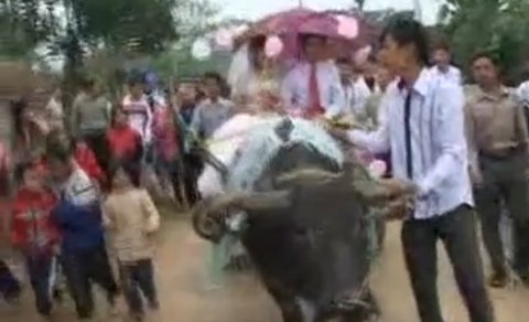 Sốt clip đám cưới rước dâu bằng xe trâu