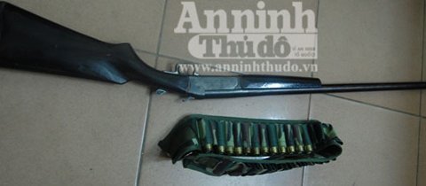 Đối tượng Phạm Ngọc Dũng và khẩu súng tang vật |