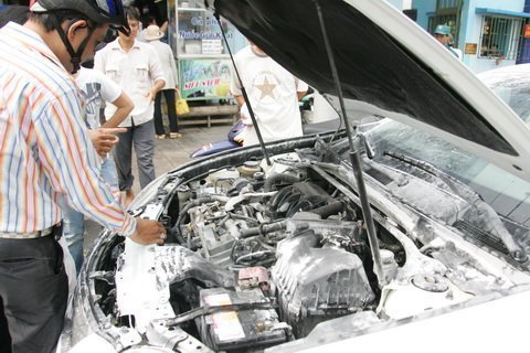 Sau khi kiểm tra, lái xe cho biết chỉ mới cháy phần ống nước nên sau 1 giờ sửa chữa tại chỗ chiếc xe có thể tiếp tục hành trình.