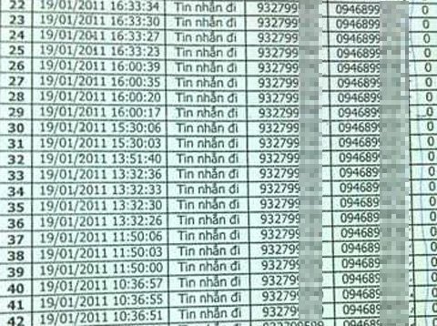 | Danh sách những cuộc gọi và tin nhắn dày đặc bất thường giữa ông Tâm và bà Liễu do ngành Viễn thông tỉnh Long An cung cấp (Ảnh: Người lao động) |