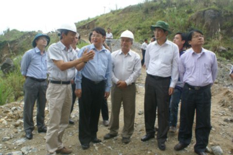 | Đoàn công tác của tỉnh Quảng Nam do Bí thư Tình ủy Quảng Nam Nguyễn Đức hải dẫn đầu khảo sát tại đập thủy điện. Ông Hải nhấn mạnh: Cần phải làm rõ nguyên nhân các vết nứt và đơn vị chủ quản của dự án này phải trả lời trước dân và công luận hồ chứa nước này có an toàn hay không? |
