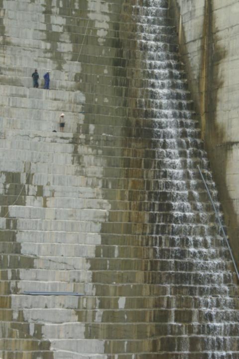 ![]() Vết nứt nước tuôn chảy thành thác hai bên vai của cống xả lũ trên hồ chứa đập thủy điện Sông Tranh 2 ![]() Toàn cảnh bờ đập thủy điện Sông Tranh 2 ![]() ![]() Ngay tại các vết nứt trên bờ đập chính thủy điện Sông Tranh 2, các công nhân đang cần mẫn đội nắng khoan sâu vào bê tông theo vết nứt để đặt ống dẫn nước và bơm hóa chất vào để không cho nước phun trào ra thân đập. ![]() Nước vẫn phun thành vòi sau khi các điểm nứt được khoan để đưa ống nhựa vào trên thân đập hồ chứa thủy điện Sông Tranh 2 vào sáng ngày 22-3. ![]() Cận cảnh những mảng bê tông bị vỡ trên thân đập thủy điện Sông Tranh 2 sau khi xảy ra sự cố nứt. ![]() ![]() Toàn cảnh hồ chứa hồ chứa thủy điện sông tranh 2 phía thượng lưu ![]() Ngay tại các vết nứt trên bờ đập chính thủy điện Sông Tranh 2, các công nhân đang cần mẫn đội nắng khoan sâu vào bê tông theo vết nứt để đặt ống dẫn nước và bơm hóa chất vào để không cho nước phun trào ra thân đập. Cận cảnh vết nứt ngày càn rộng ở thân đập chính không phải là vết nứt khe nhiệt như giải thích của Ban quản lý thủy điện 3. Vết nứt này ngày càng rộng thêm không nứt theo đường thẳng mà theo hình ngoằn ngoèo theo ghi nhận tại biên bản làm việc của đoàn kiểm tra UBND tỉnh Quảng Nam vào chiều hôm qua (21-3). ![]() |