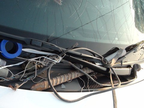 Cần gạt nước chiếc Lexus vướng vào dây diều, khiến tài xế mất tập trung. |
