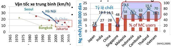 | Trong đô thị: sở hữu phương tiện cơ giới tăng nhưng tốc độ di chuyển chậm lại và tai nạn gia tăng |