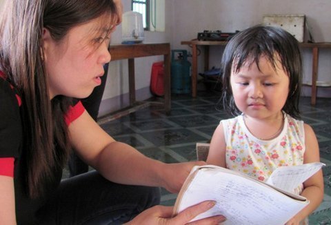 Để kiểm chứng, chúng tôi đưa ra tờ báo bảo bé Vy đọc. Ban đầu thấy người lạ em hơi rụt rè, nhưng khi được cô giáo cầm lấy tờ báo rồi nhẹ nhàng nói “con đọc cho cô nghe đi con” thế là bé Vy đọc một cách tự nhiên, vanh vách khiến chúng tôi thật sự ngỡ ngàng.