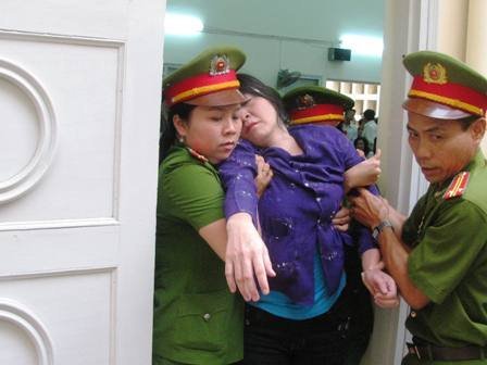 | Bị cáo Trần Thúy Liễu liên tục ngất xỉu và gào thét trong phiên xử. |