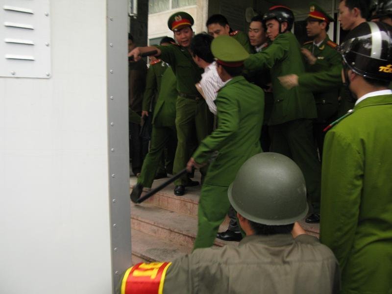 Luyện được nhanh chóng đưa ra xe bít bùng, lập tức người nhà nạn nhân lao về phía Luyện, rút guốc đánh và chửi rủa, la ó.